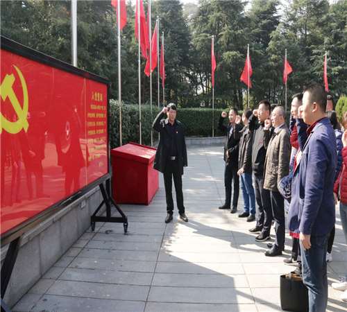 公司黨總支全體黨員胸前佩戴黨徽,于11月29日上午11時到達(dá)韶山。青山肅穆、白云俯首,在毛主席銅像廣場,首先由黨總支書記李方愛同志帶領(lǐng)全體黨員敬獻(xiàn)了花籃,全體黨員鞠躬致敬,繞銅像一周,深切緬懷毛澤東同志。隨后,全體黨員在黨旗下重溫入黨誓詞,參觀毛澤東同志故居。